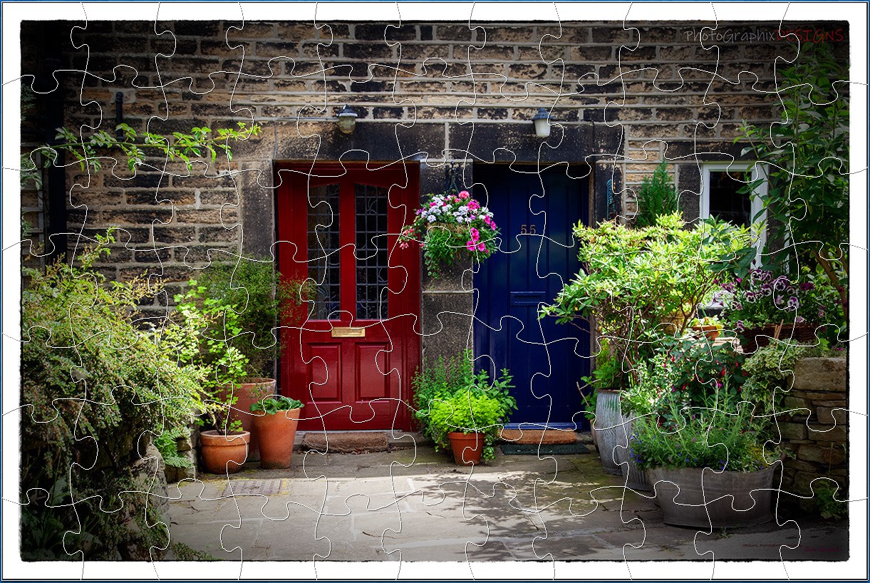 Well, you can now discover the enchanting world of "The Cottage Doors" through our exclusive range of products. Whether you're looking to add a touch of timeless beauty to your home with our fine art prints, challenge your mind with our engaging digital jigsaw puzzles, or send a charming and intriguing message with our eCards, we have something for everyone. Each product features the captivating image of two quaint village doors, one red and one blue, surrounded by lush potted greenery and a rustic stone wall, inviting you to imagine the stories behind each door. Please come inside!